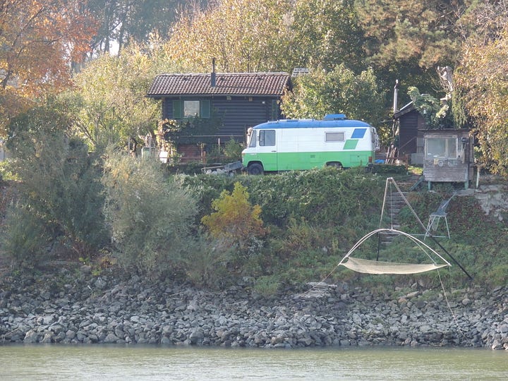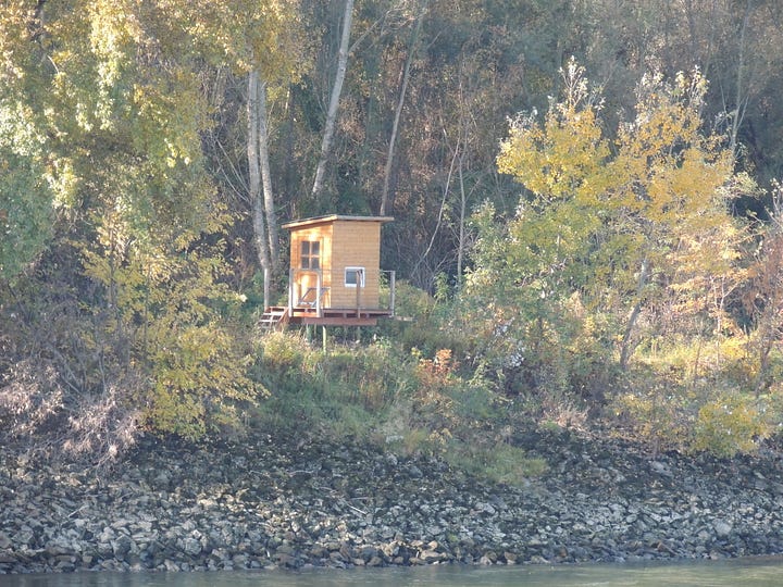 I am sitting on the top deck of the Imagery II, soaking in the morning sun and breathing the cool Autumn air. We are 2 hours from Vienna. On both side of the river are tiny cabins built on stilts that appear to be fishing cabins. Some have nets stretched across metal poles, hovering over the water.